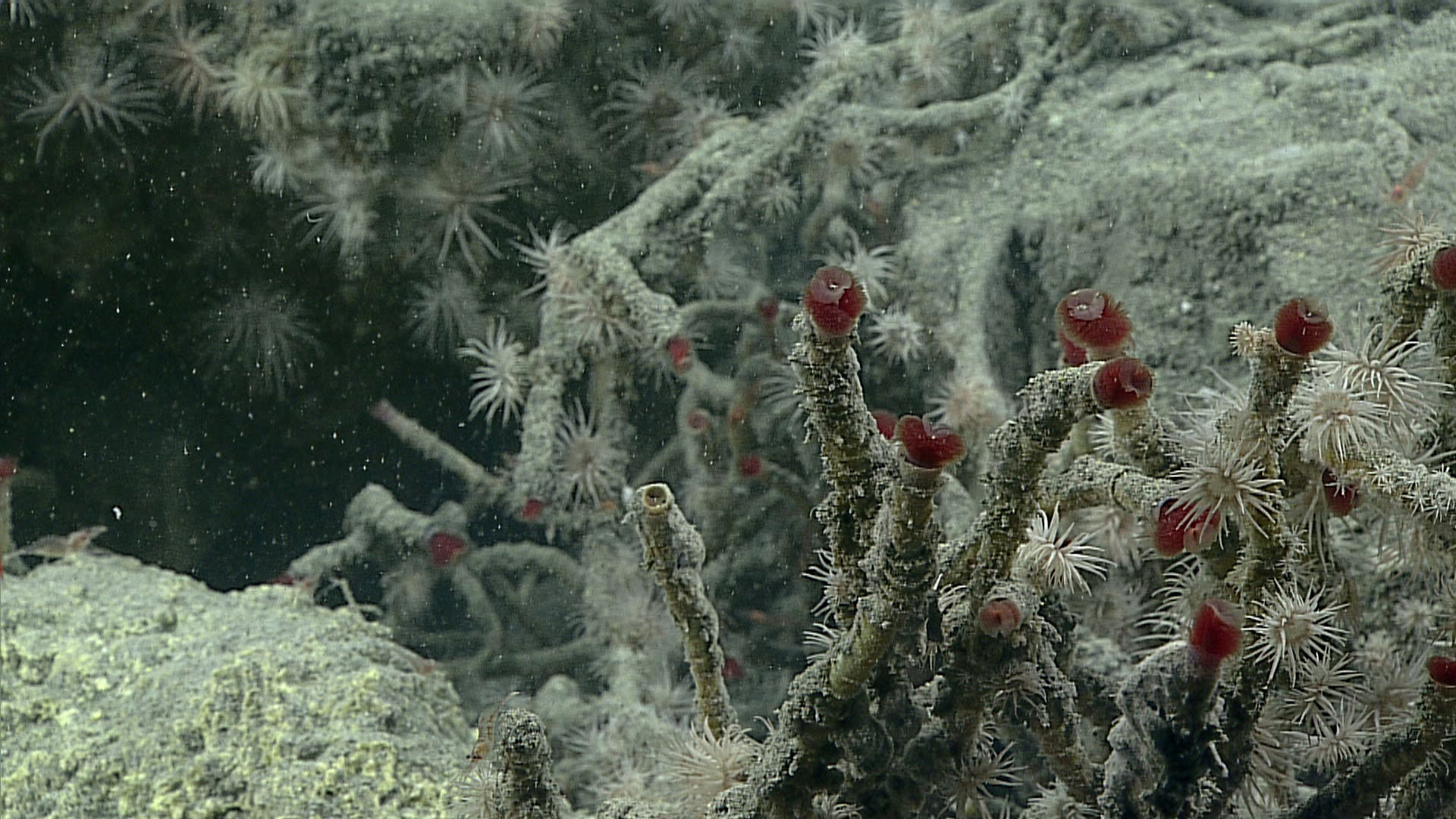 2016 Deepwater Exploration of the Marianas March 2, 2023 1920 × 1080 Camps Tube worms with red gills and anemone observed at the crater rim.